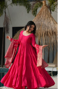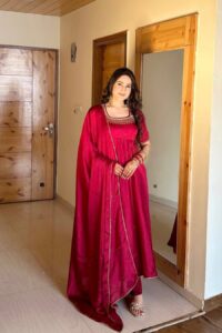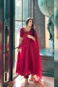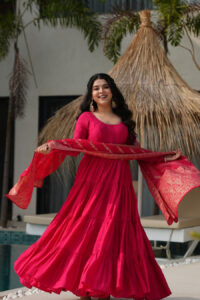 Ruby Red Silk Anarkali Gown Set