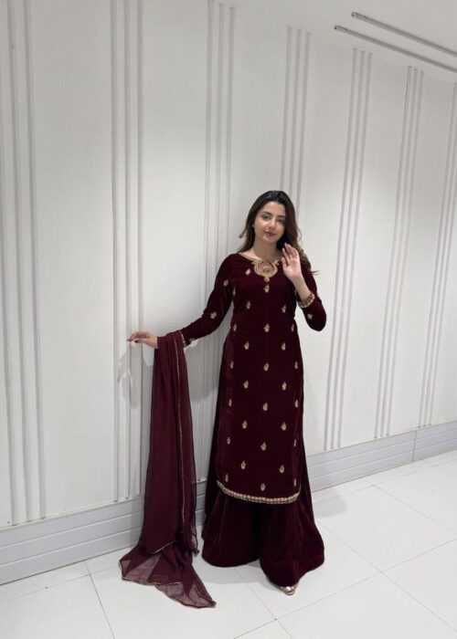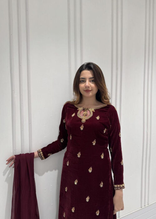 "I ordered the Maroon Velvet Suit for a winter wedding. The fabric is so heavy and royal, it kept me warm while looking stunning."