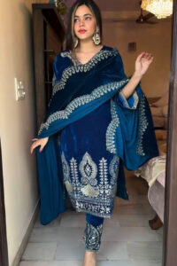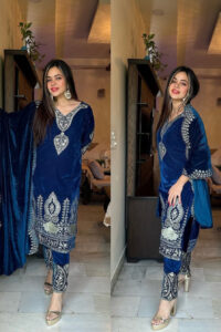 Aafreen Royal Blue Velvet Suit Set
