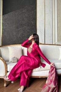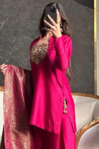 Magenta Pink Silk Embroidered Salwar Suit with Banarasi Dupatta