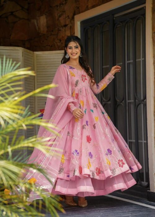 Magenta Embroidered Anarkali Suit Set with Dupatta