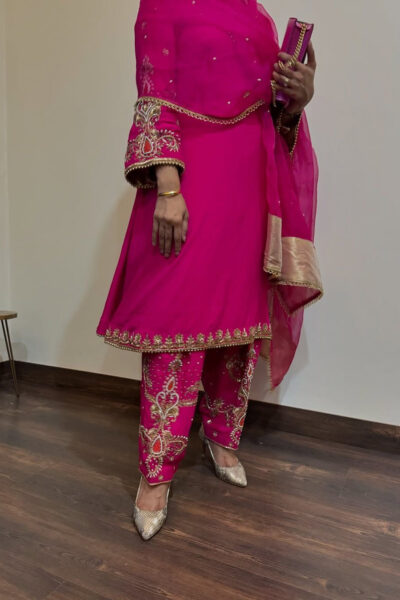 Royal Fuchsia Kurta Palazzo With Dupatta Set