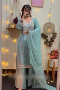 Celestial Blue Georgette Palazzo Suit