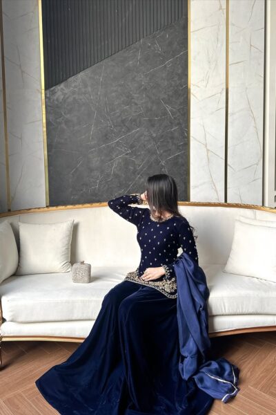 Royal Plum Mirror-Velvet Embroidered Ensemble