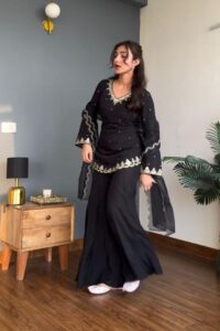Noir Ziya Embroidered Sharara Set