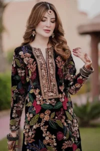Aafreen Embroidered Velvet Ensemble