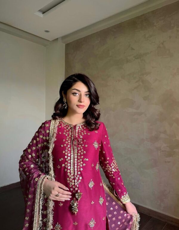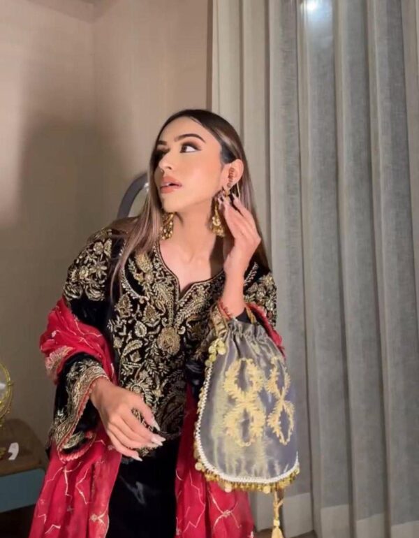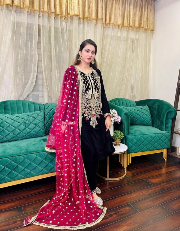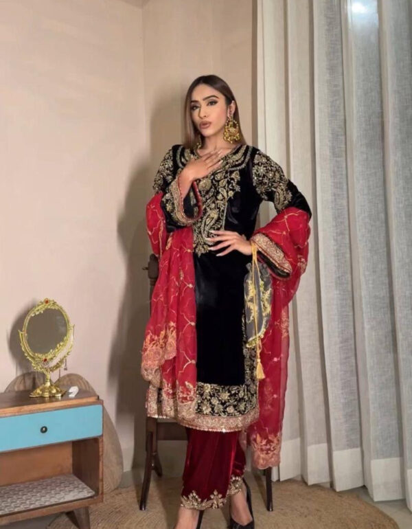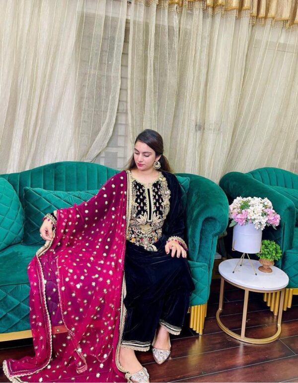 Step into a world of timeless elegance with our Zareen Velvet Suit Set, a masterpiece designed for the modern woman