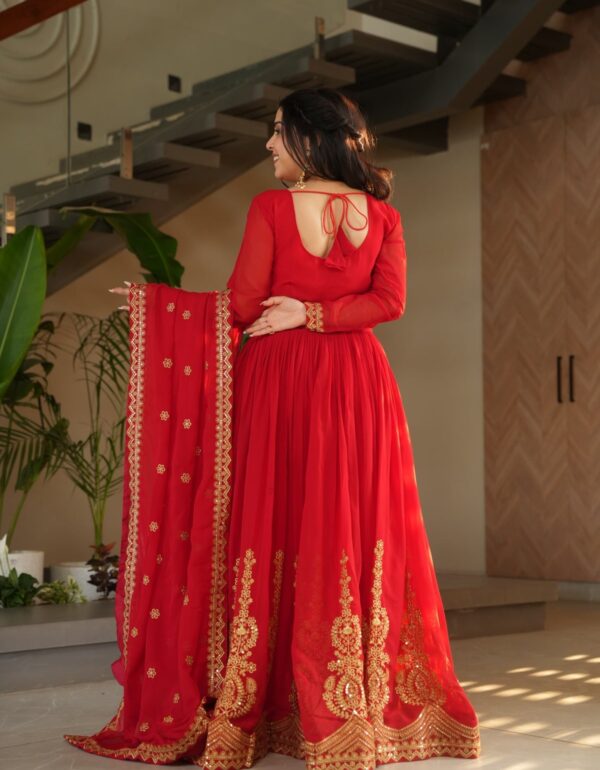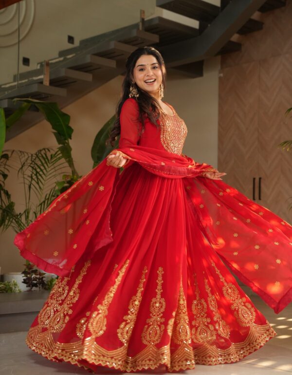 Kahani Premium Red Anarkali Suit Set Model is Wearing: S Size Model Height: 5.5 Care: DRY CLEAN Shipping Info: Same Day Dispatch Time Kurta :