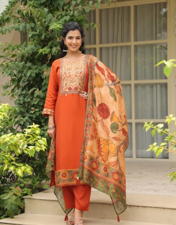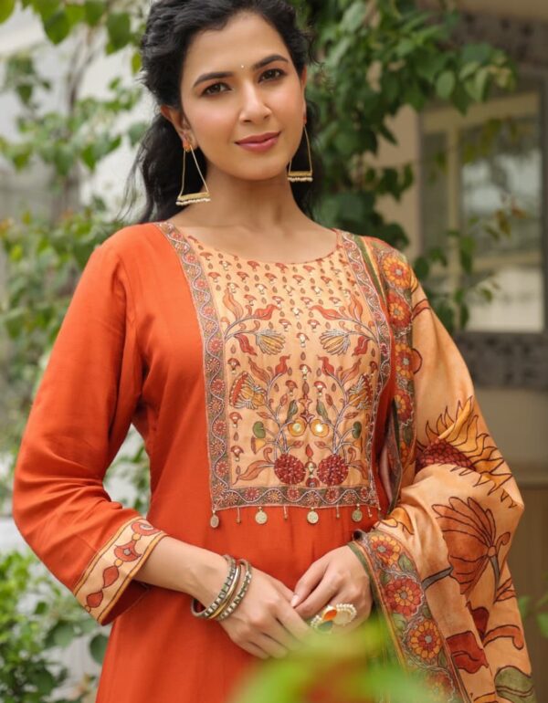 Kurta Fabric – Dola Silk (with cotton lining) Detail – Beautiful Detailing Work Pant Fabric – Dola Silk