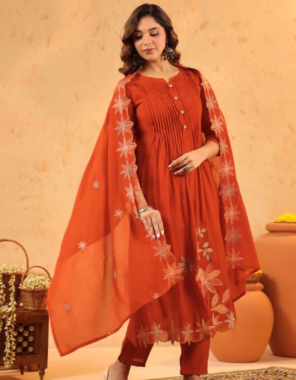 Kurta Fabric – Mul Chanderi Detail – Beautiful Detailing Work Pant Fabric – Mul Chanderi Dupatta Fabric –