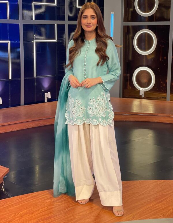 Fabric Details:• Top: Heavy Georgette with Embroidery WorkInner: Soft Micro CottonLength: 38 inches• Bottom (Farshi Pant): Heavy Georgette with Canvas