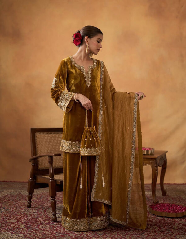 Enhance the beauty of your wardrobe with this newly launched velvet Kurti–Plazzo set. Fabric Details Kurti • Fabric:
