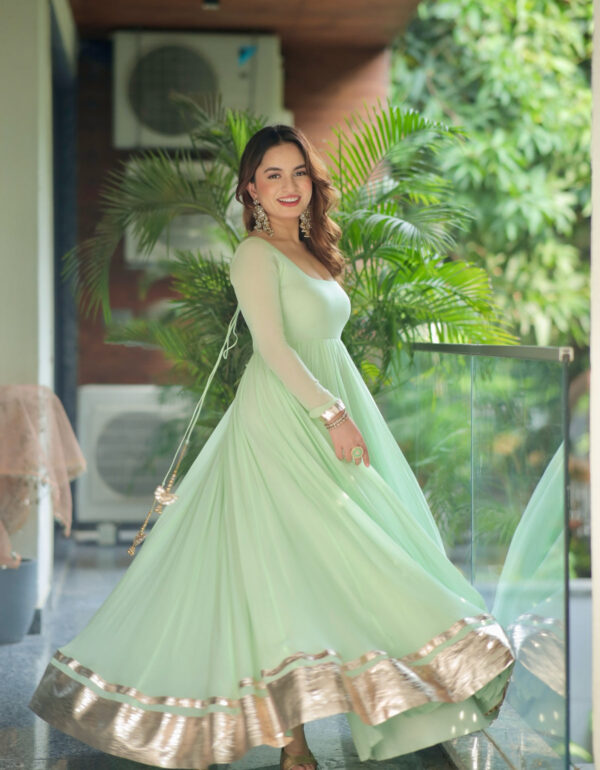 Top Fabric: Premium Georgette with heavy embroidery and sequence work Inner: Heavy micro cotton Sleeves: Full sleeve Stitching: Fully