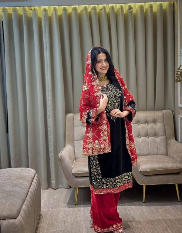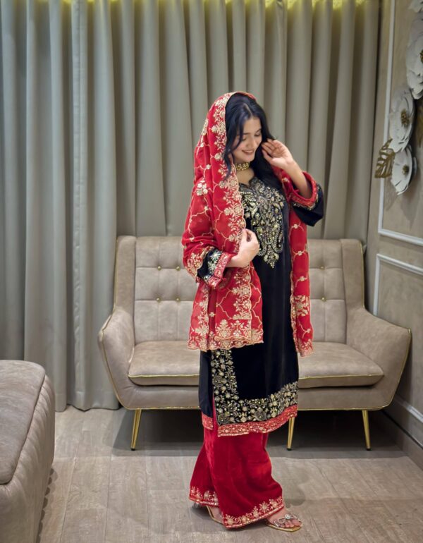 Luxury Black Velvet Pheran Style Suit -Festive Wear
