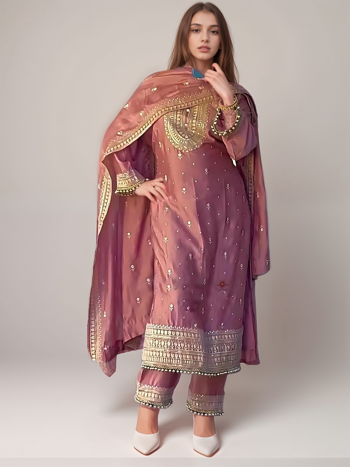 Blush Mauve Embroidered Salwar Kameez Set