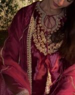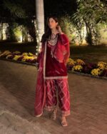 Experience luxurious warmth and elegance with this winter-season velvet designer kurta–pant set, beautifully adorned with intricate embroidery work.
