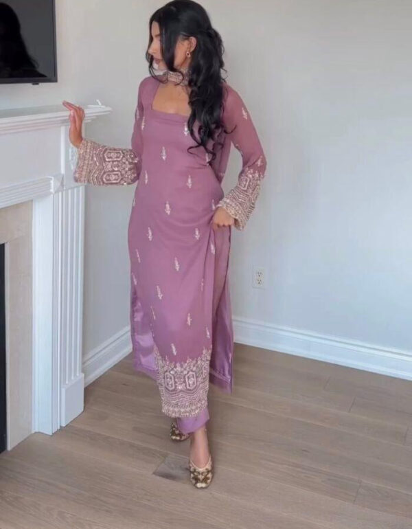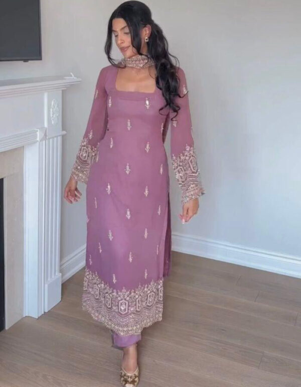 Top Fabric: Premium Georgette Work: Embroidery sequence work with fancy lace border and pearl handwork Length: 42