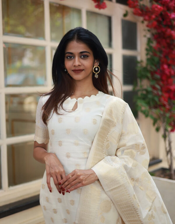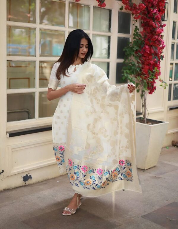 Top Fabric: Heavy Viscose Jacquard Bottom Fabric: Pure Viscose Chanderi Dupatta Fabric: 2.2 m Jacquard Dupatta Kurti Length: 44+