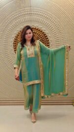 Presenting the Emerald Heirloom Velvet Ensemble, a statement luxury ethnic wear set designed for sophistication and festive grandeur. The fully