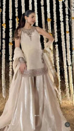 Champagne Embroidered Rangoli Silk Gharara Ensemble
