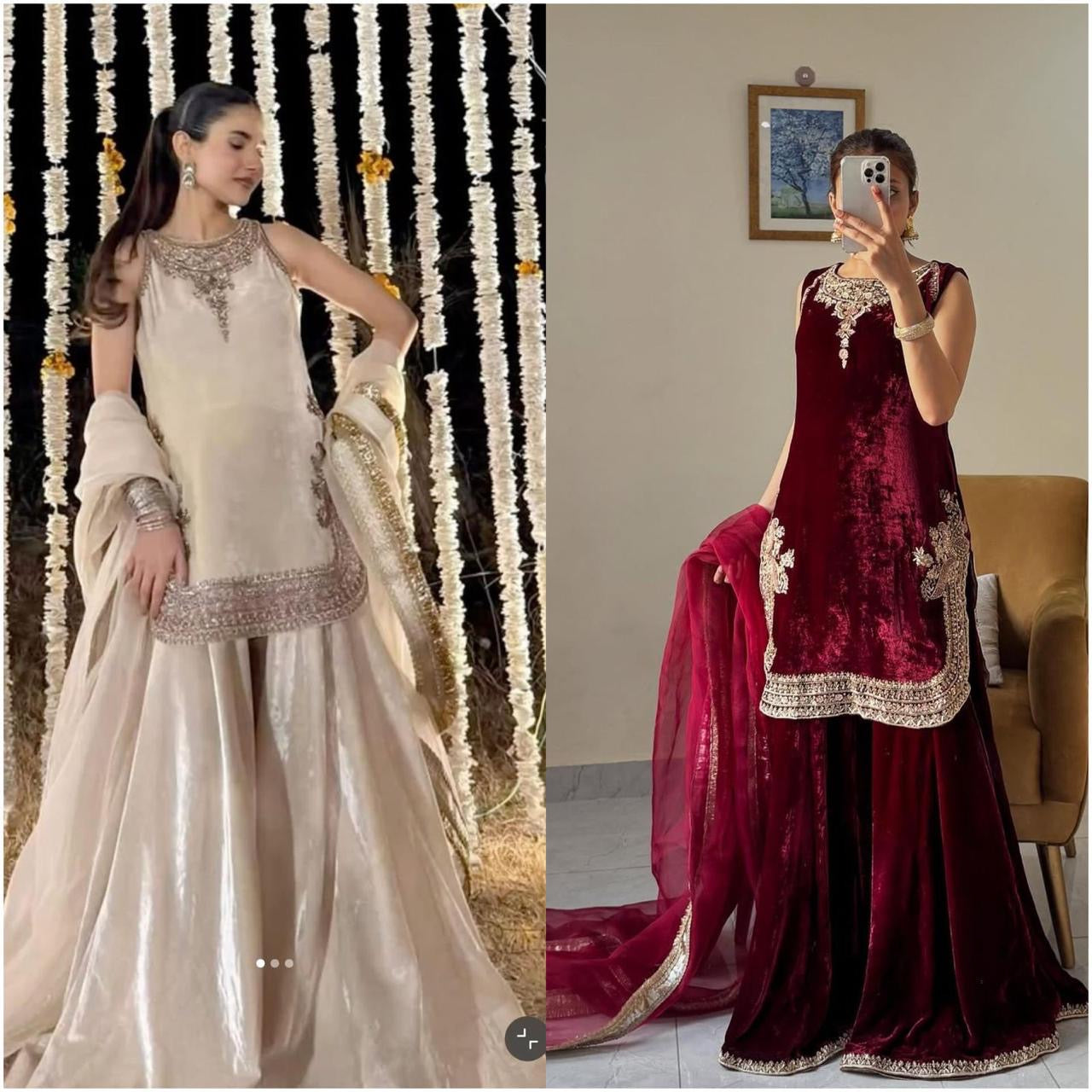 Launching a new designer party-wear sharara set featuring a rich maroon pure heavy viscose velvet top, sharara palazzo, and net