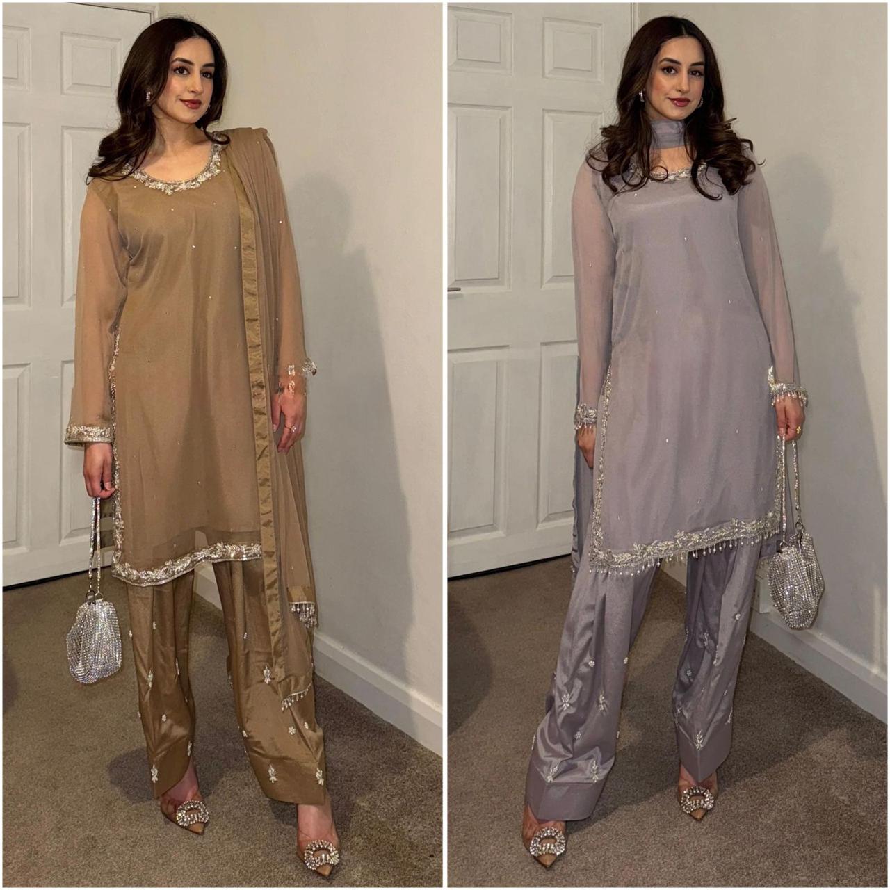 - Fabric: Premium georgette with embroidery and sequence work