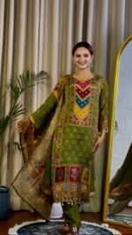 - Sleeves: Full Sleeves with Digital Print, Real Mirror Hand Work, and Hanging Lace Border