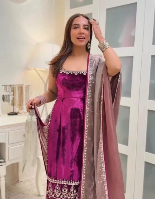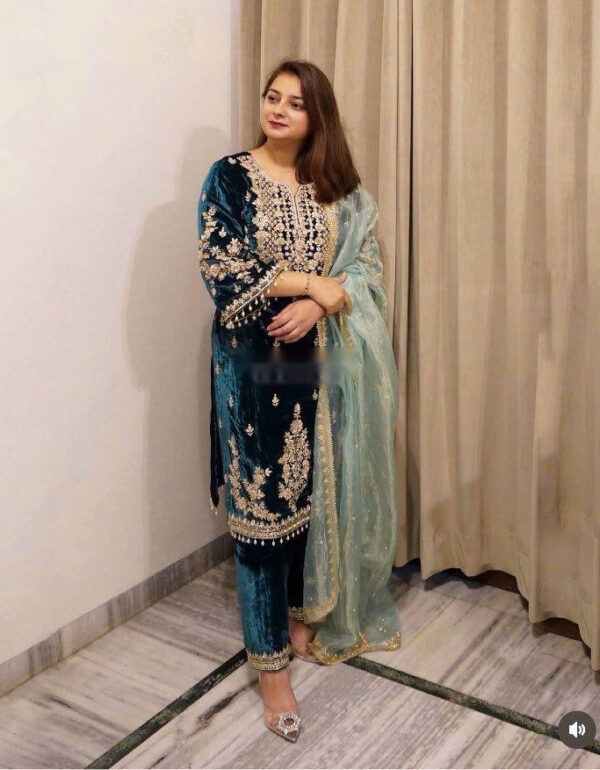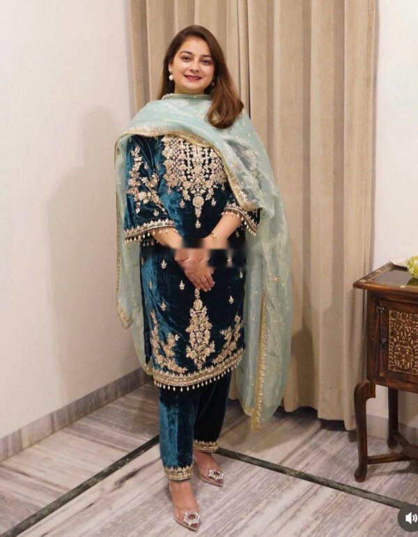 - Fabric: Premium Georgette with heavy embroidery and sequence work