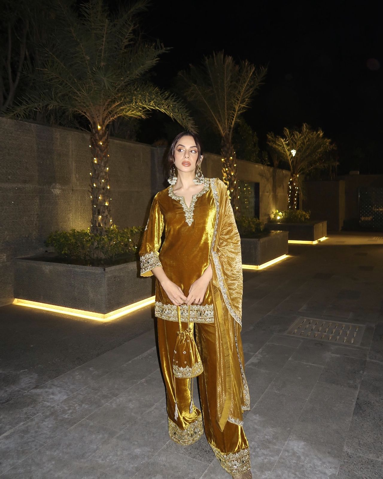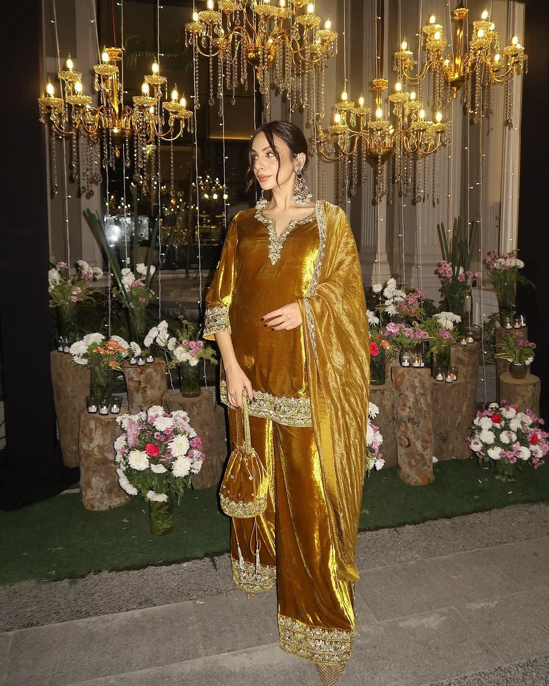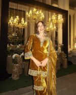 Enhance the beauty of your wardrobe with this newly launched velvet Kurti–Plazzo set.