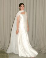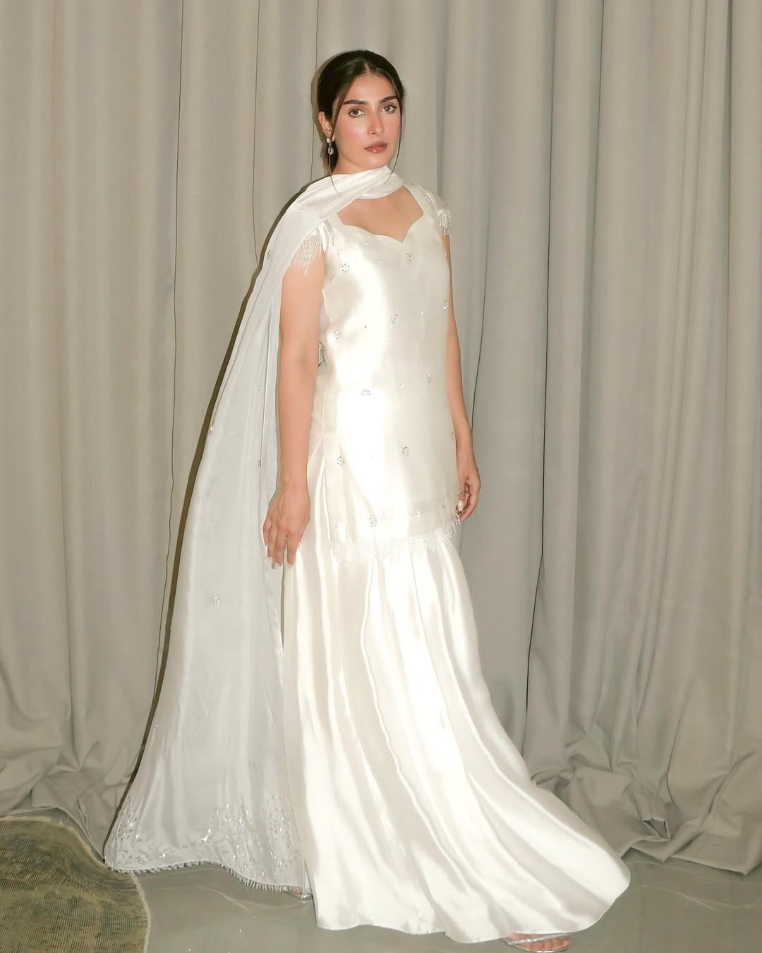 Gown: • Fabric: Crunchy silk with embroidery sequence work and full flare • Sleeves: Full • Inner: Heavy micro cotton