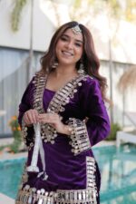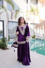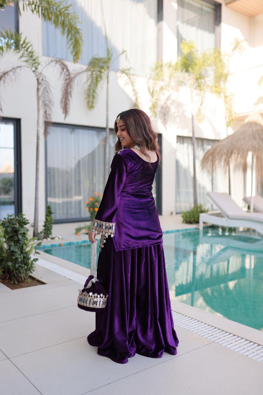 Royal Plum Mirror-Velvet Embroidered Ensemble