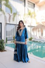 TOP: Fabric: Velvet Work: Sequin embroidery Inner: Micro Height: 43 inches PALAZZO: Fabric: Heavy Mono Banglori