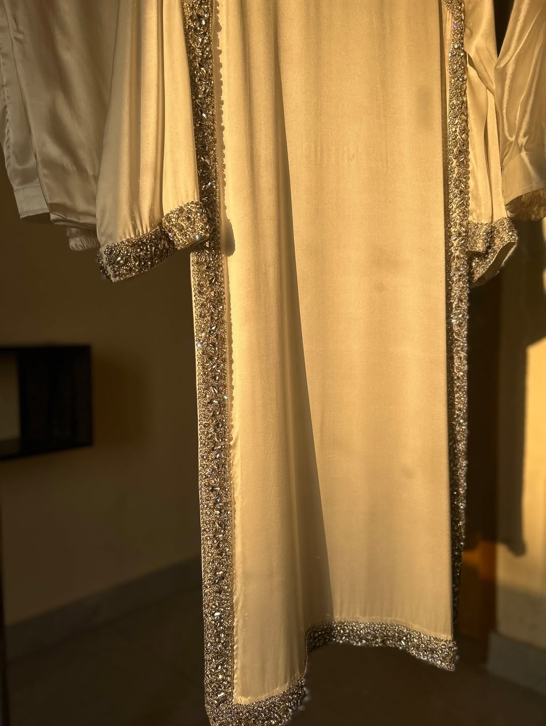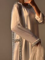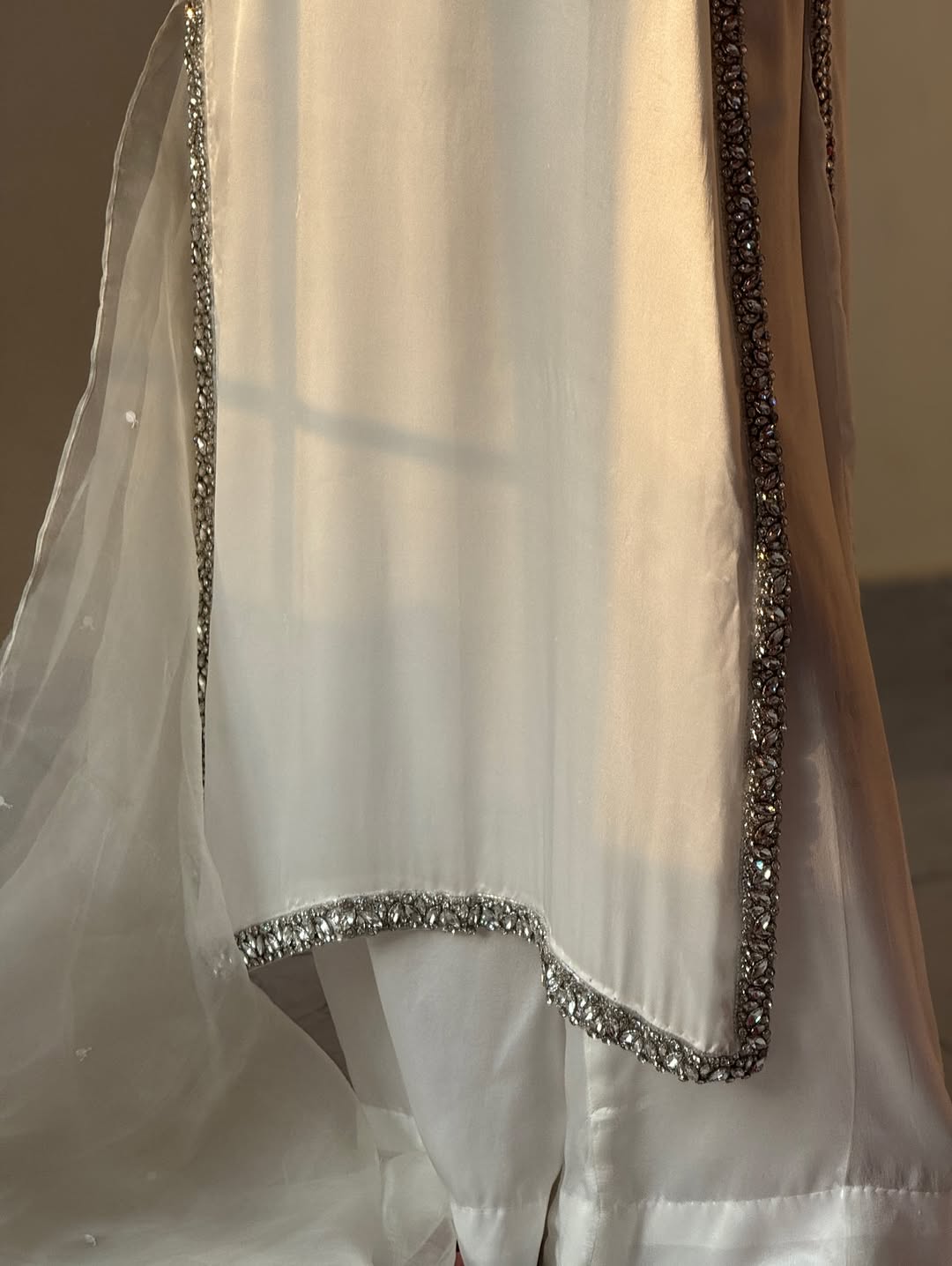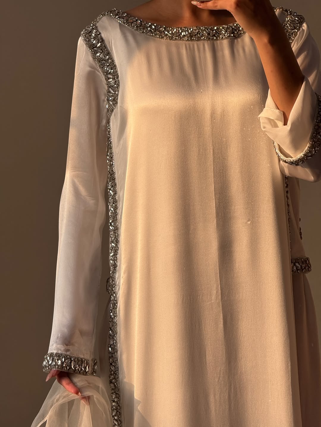 Top Fabric: Pure Heavy Georgette with Hot Fix Zarkan Diamond Work Sleeves: Full Inner: Heavy Micro Cotton