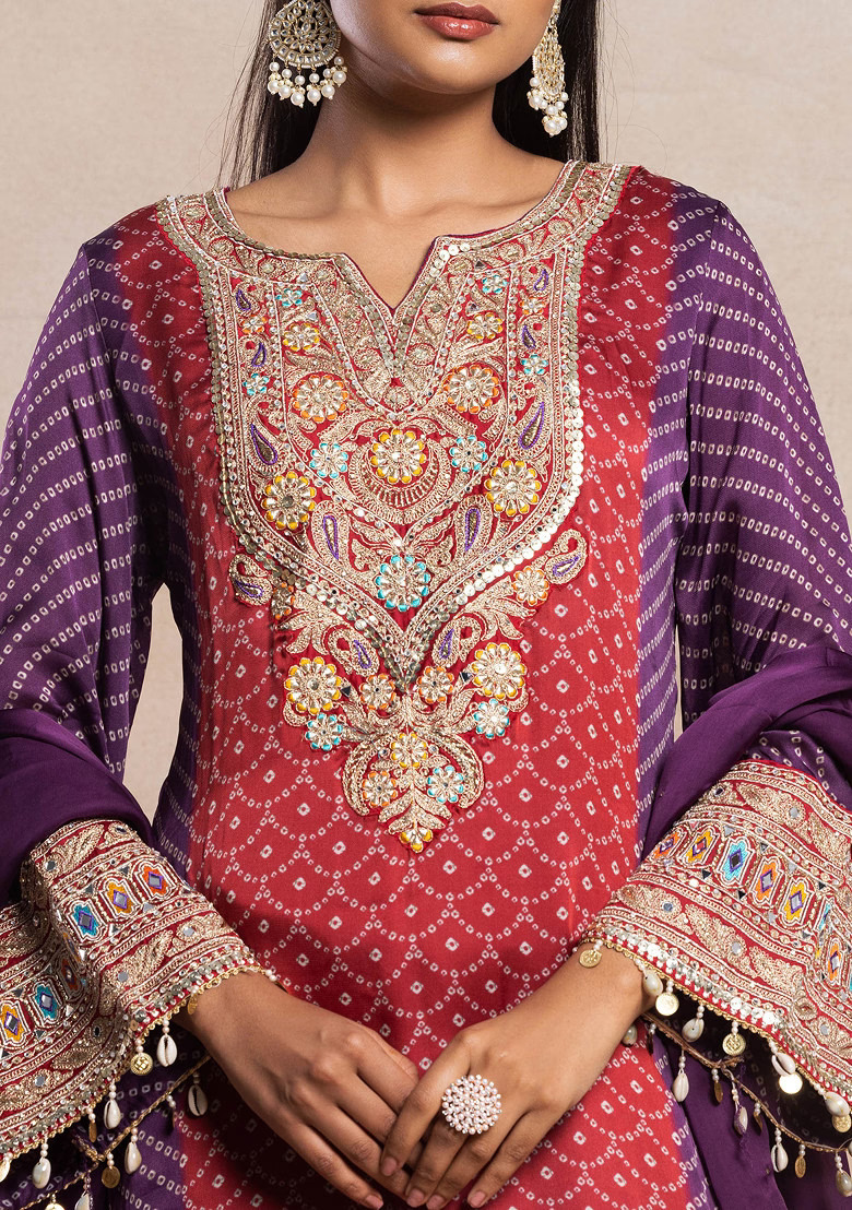 Elegant Embroidered Purple and Red Salwar Suit Set