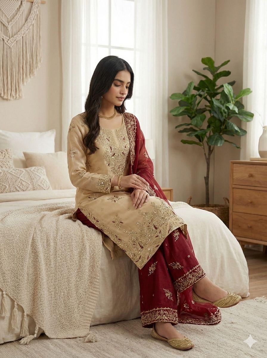 Fabric: Pure silk with heavy embroidery sequence work and full sleeves