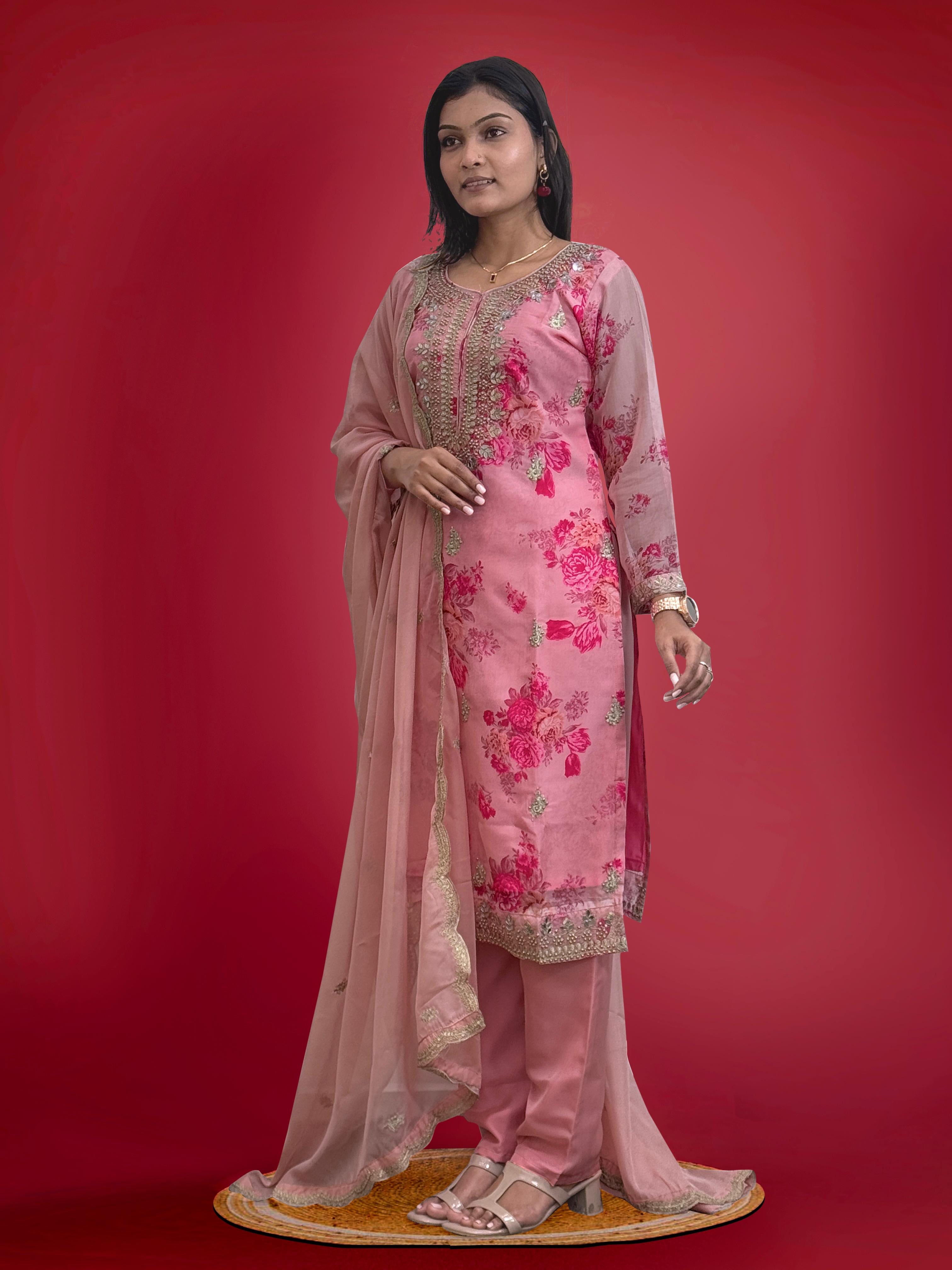 Presenting our Regal Kundan Organza Suit Set, a masterpiece of traditional craftsmanship and contemporary style.