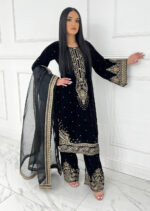 Plazzo Fabric: Heavy Pure Viscose Velvet with Embroidery and 5 mm Sequin Work