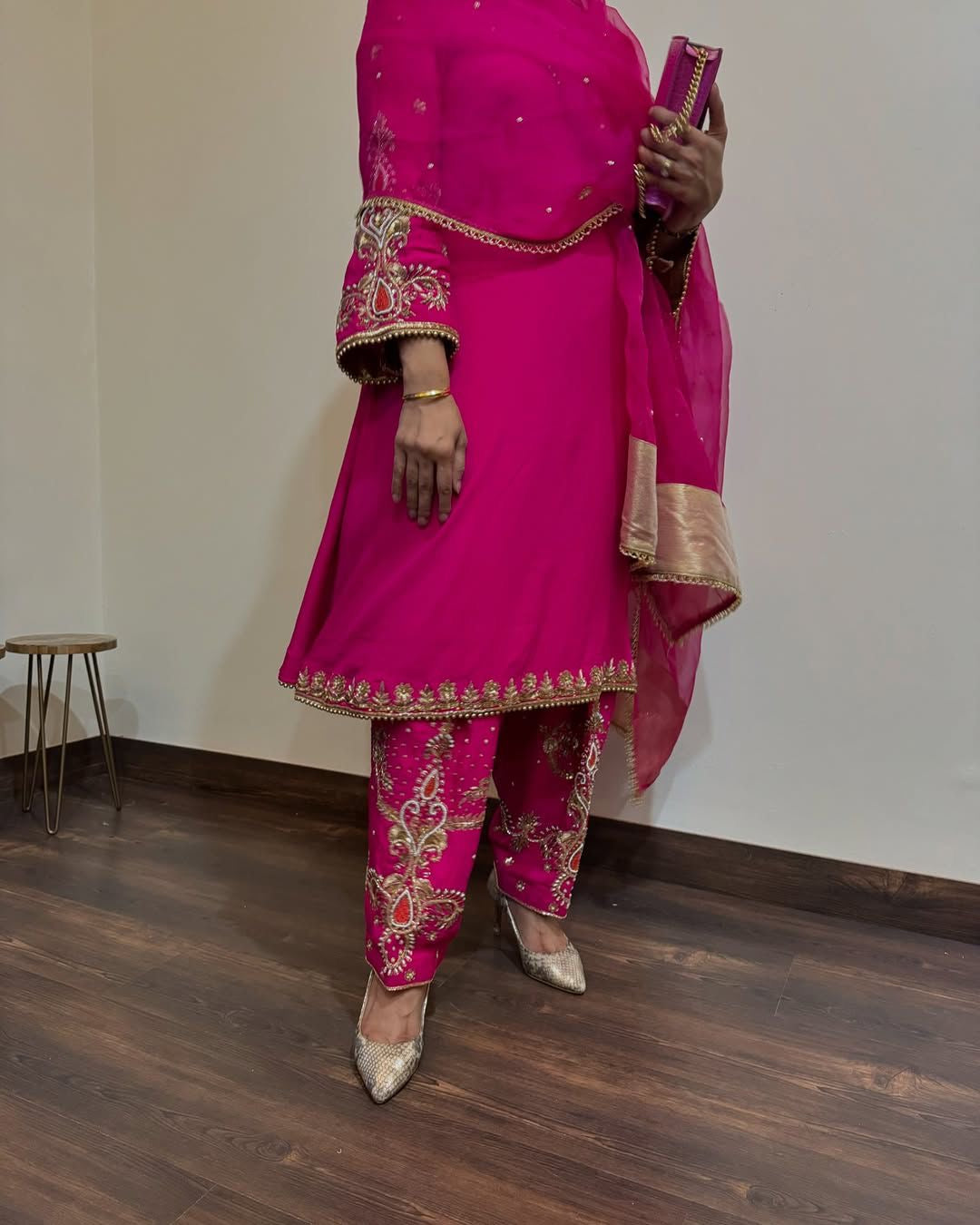 - Work: Embroidery sequence work with fancy lace border and pearl handwork