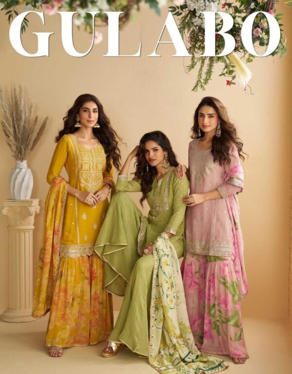 Kurta Fabric: Premium Georgette  Cut: Kali-cut design for a flattering flare Length: 52–55inches   Sleeves: Full-length 22” Stitching: Fully stitched & ready to wear  Pant