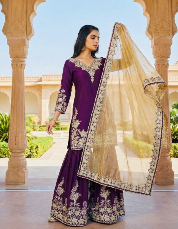 Top: Fabric: Premium Sheesha Silk Work: Heavy embroidery and sequins work with half sleeves Inner: Heavy micro cotton   Pant:
