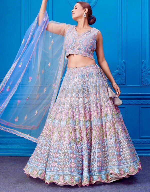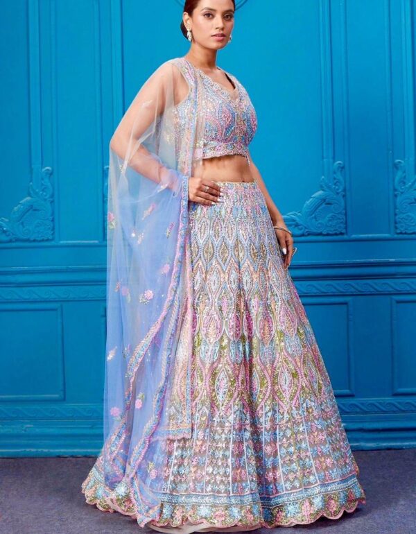 Experience timeless elegance with this heavily embroidered bridal lehenga set, crafted from premium soft net fabric. This luxurious ensemble features