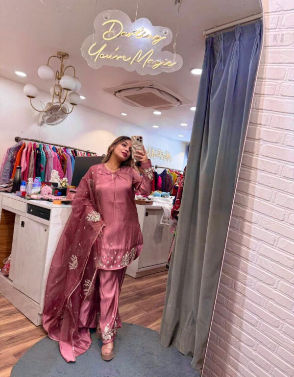 Discover the epitome of grace and luxury with our Roselle Silk Embroidered Suit Set, available in two enchanting shades: a