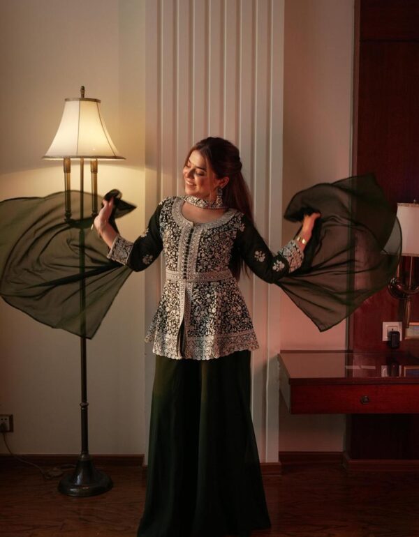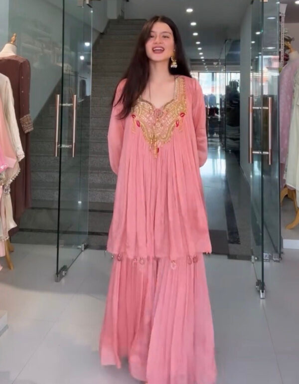 Product Details Top Fabric: Heavy Georgette with heavy embroidery sequence work Fully stitched, ready to wear Top length: 38–39