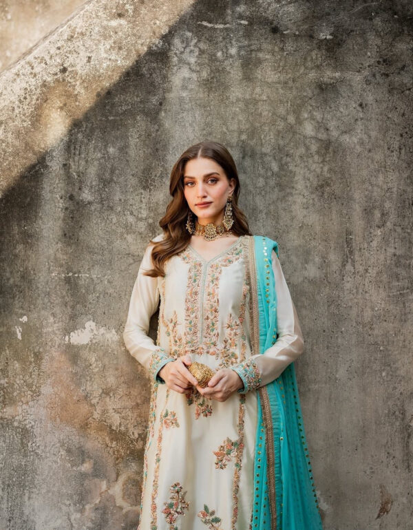 Ivory Gold Embellished Anarkali Gown with Matching Dupatta