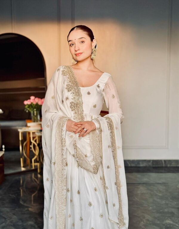 Gown• Fabric: Heavy Pure Chinon• Work: Intricate Embroidery with Thread and Sequin Work, full flair• Inner: Butter Crepe• Length: 53-54