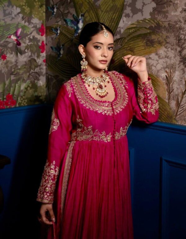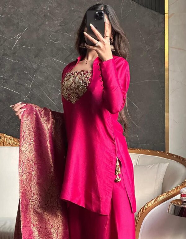 Magenta Pink Silk Embroidered Salwar Suit with Banarasi Dupatta