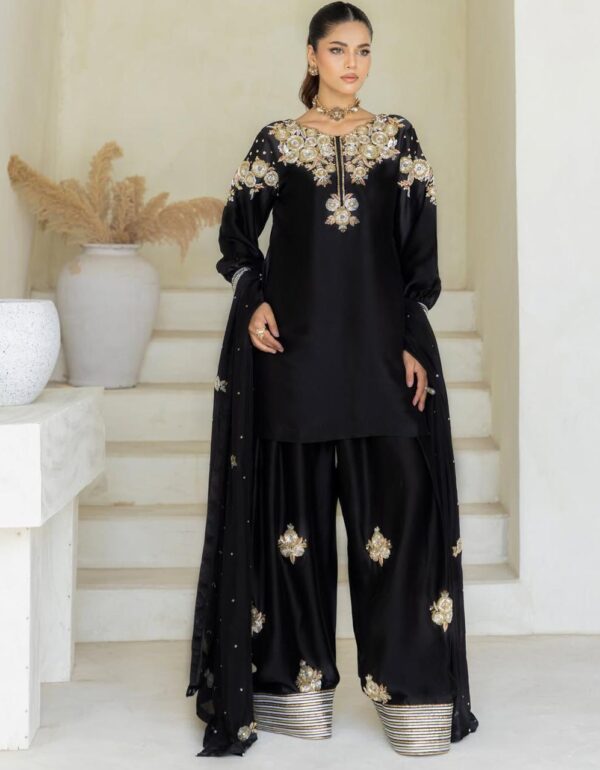 Black Luxury Embroidered Silk Salwar Suit with Dupatta