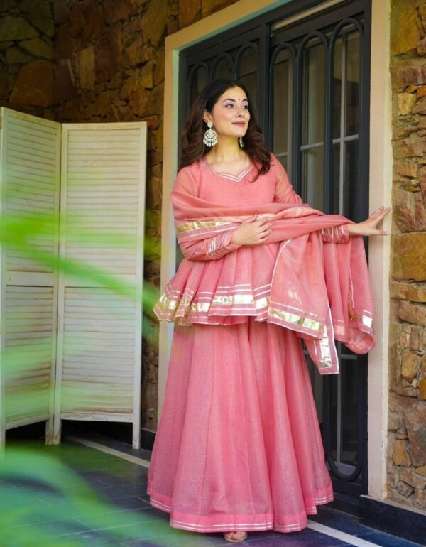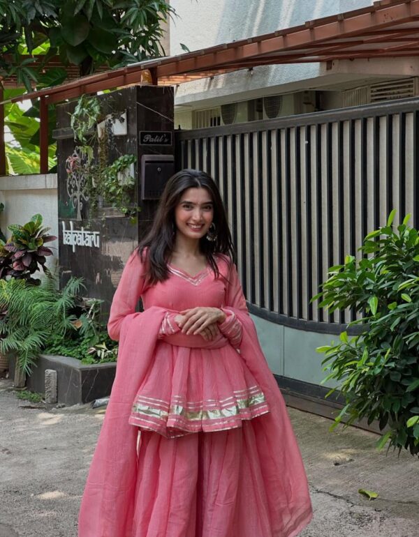 GOWN• Fabric: French Crepe with Full Flair• Sleeves: Full• Inner: Heavy Micro Cotton• Length: 49–50 inches• Flair: 4 meters BOTTOM