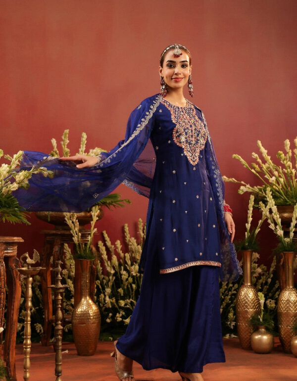 Royal Blue Kurta Palazzo Suit Set